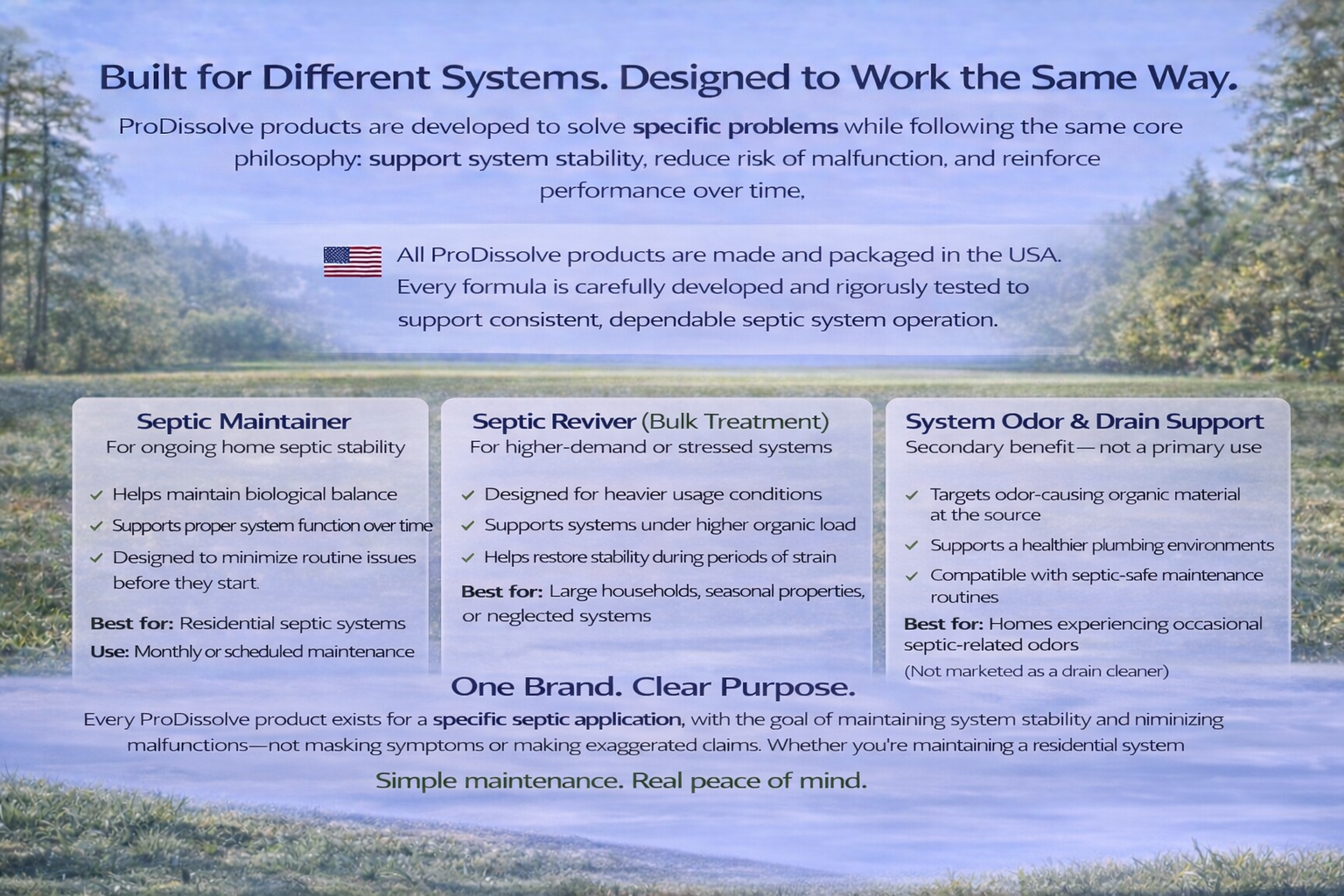 We design our products around real-world use, not one-size-fits-all claims. Different systems experience different demands, which is why ProDissolve focuses on purpose-built biological solutions designed to support long-term performance.